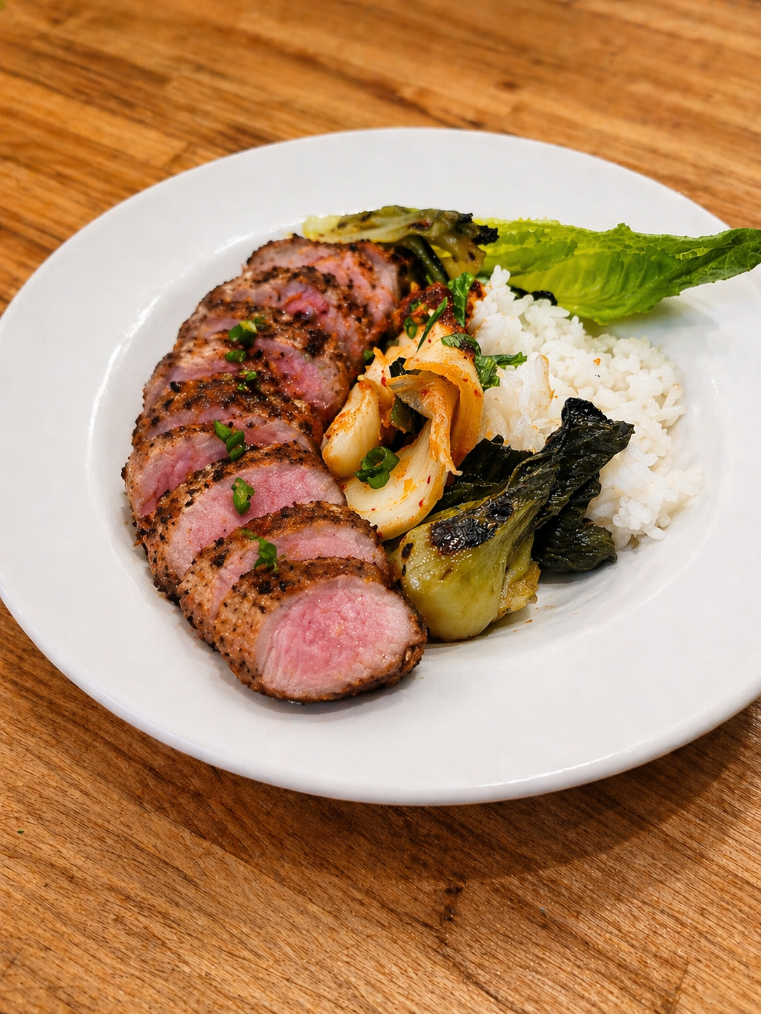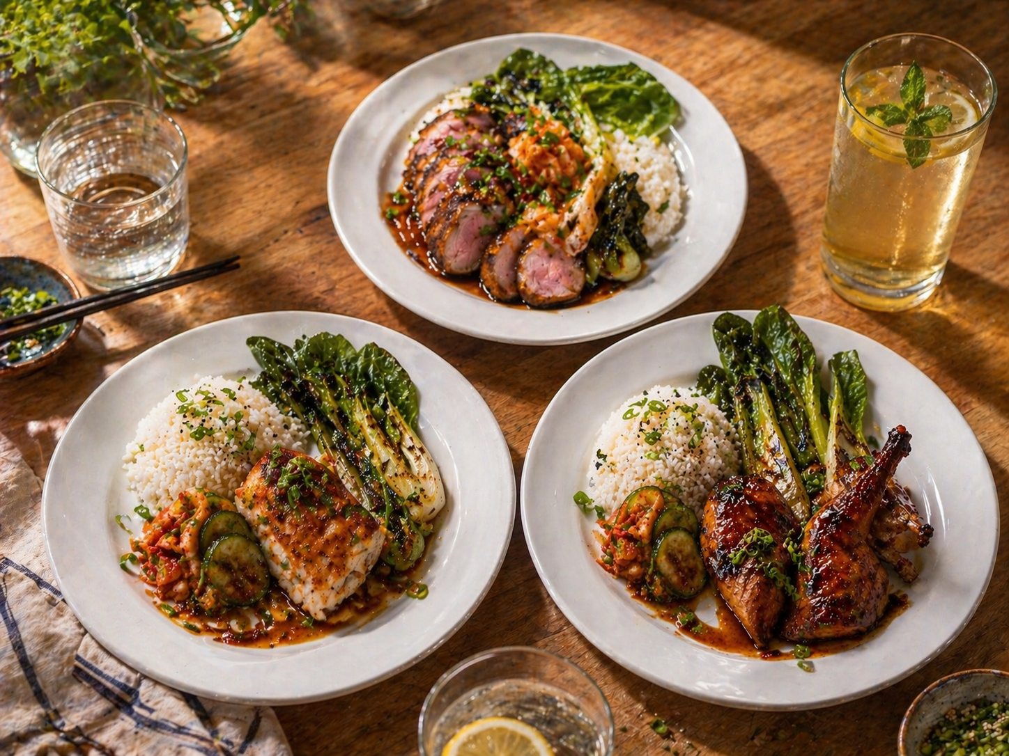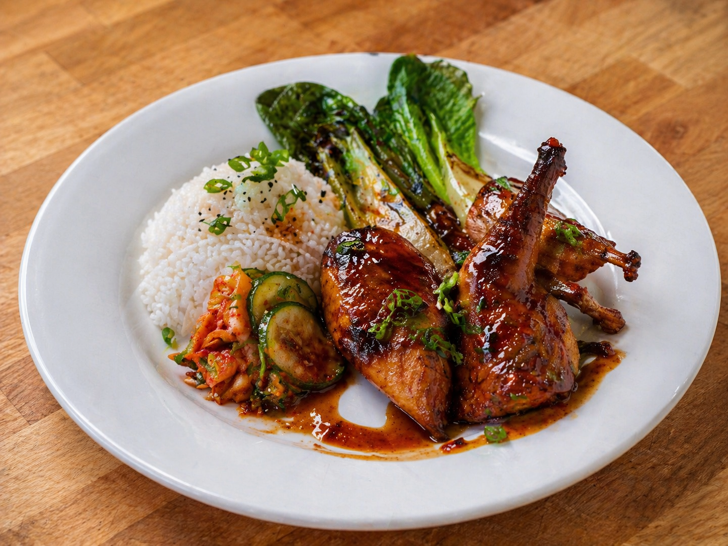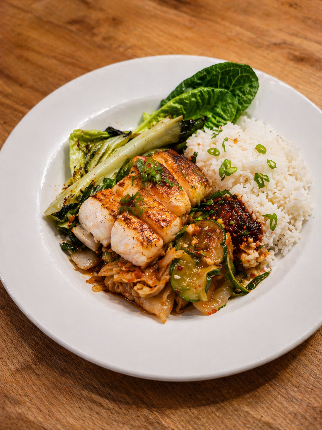 fumĂ©, marinĂ©, grillĂ© â concombre kimchi, lĂ©gumes & riz