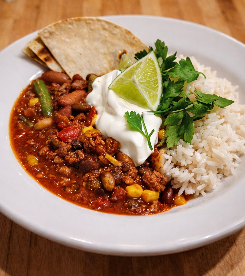 Servi avec riz, lime, crème sure et tortillas, c’est un plat polyvalent et convivial qui plaît à toute la famille.