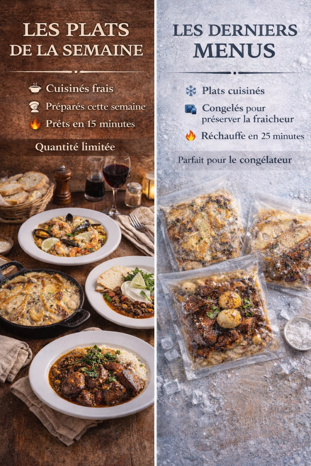 Plusieurs plats cuisinés maison sont disponibles en version congelée, parfaits pour les soirs où on n’a pas envie de cuisiner.